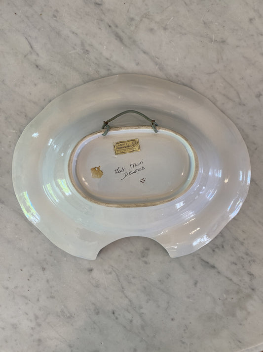 Vintage Blue & White Barbers Shaving Basin Handmade in Desvres France by Gabriel Fourmaintraux