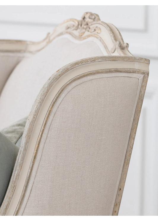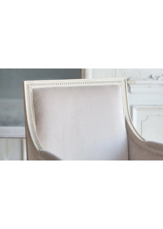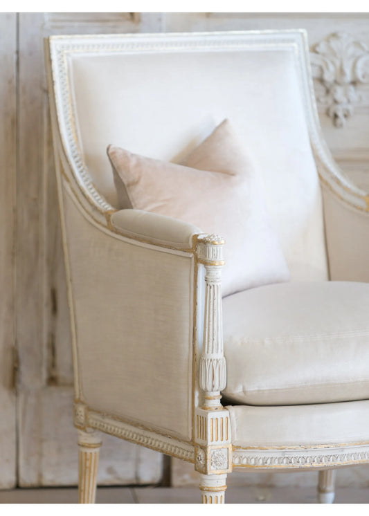 Bergere Chair in Ivory Velvet/Antique White Gold Leaf