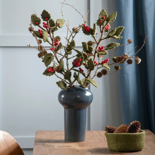 Felt Brown Deer - in Grey Dress & Red Scarf