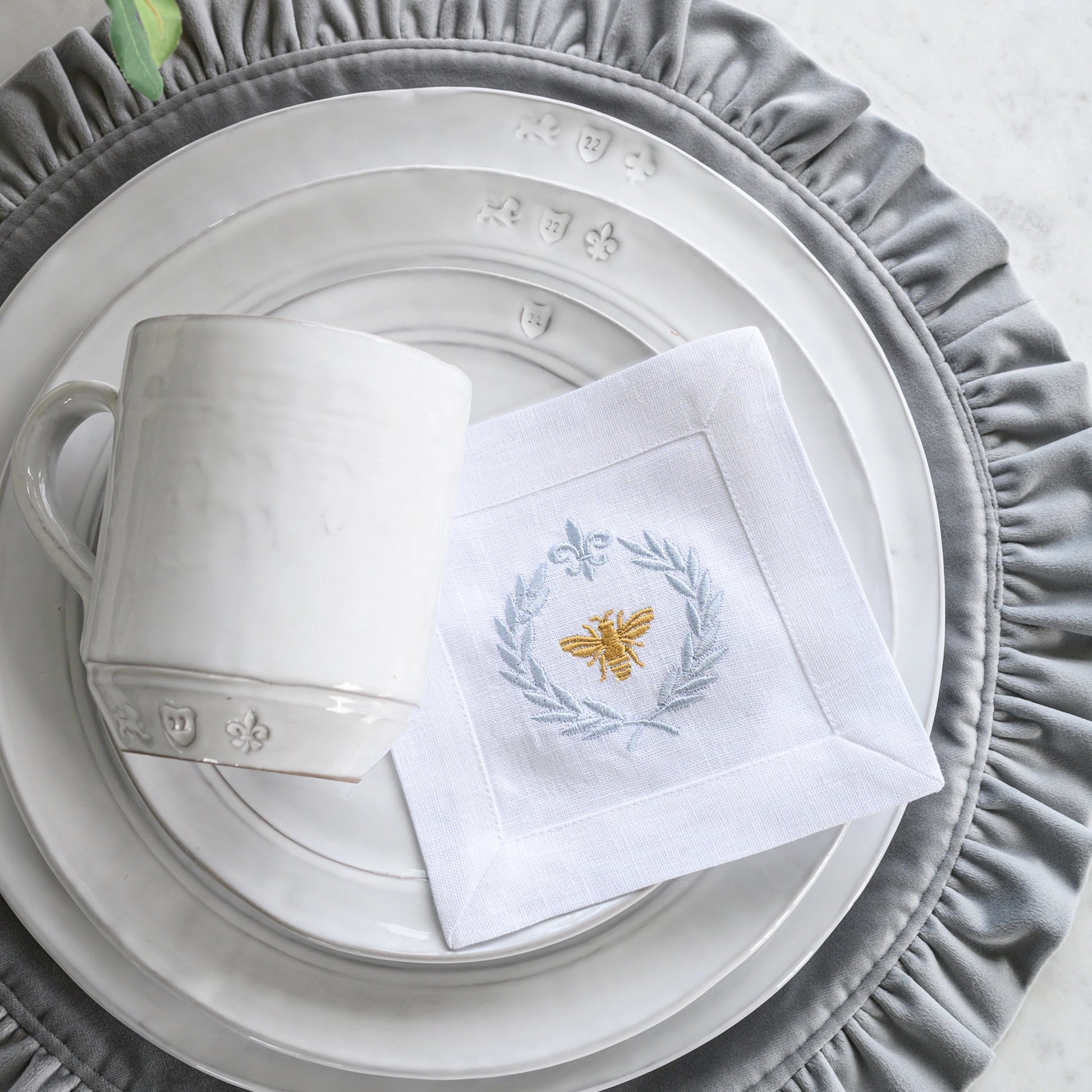 This beautiful set of four 100% European linen cocktail napkins will make your table look elegant and classy. Each cocktail size napkin is embroidered with a beautiful hemstitch pattern and measures 6" x 6". Combine with table runners and napkins for the perfect look. Each set of four cocktail size napkins comes in a linen pouch for safe keeping, making it a great gift too