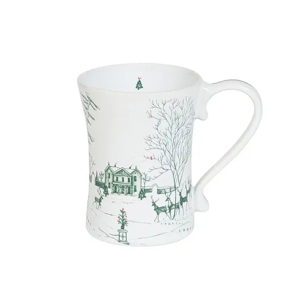 Coffee, tea, hot cocoa and hot toddy’s—every sip is a splash more special when served in this festive mug, with its evergreen illustrations (and merry pops of crimson accents!) of the country-estate in winter.