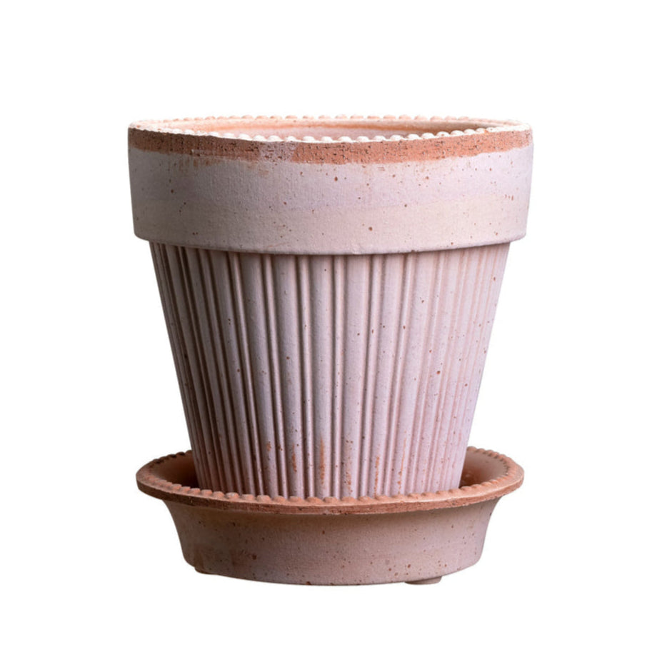 The raw clay pots by Bergs Potter are made of premium Italian clay, fired at extremely high temperatures — and nothing else. No chemicals — just the pure beauty of nature. Each of the raw terracotta pots is inherently natural, ages gracefully, and develops a beautiful patina over time. The saucers are given a special finish that makes them waterproof and prevents mould from developing. Whether they are used as a centrepiece for the dining table, to grace the window sill, or to house a large plant on your wooden floors, the beautiful pots will help add a touch of nature to every corner of the home.Breathing pots - Bergs Potter’s terracotta pots are made with Italy’s finest clay. The minerals in the clay and its high density give the pots the perfect balance of strength and porosity, allowing the pots to breathe and making them naturally resistant to frost. When a pot is watered, it changes colour, which means it breathes. When the pot breathes, it can supply moisture and air to the roots, giving the plant the best possible conditions for growth. Terracotta is a porous material, and the evaporation of water through its pores helps maintain moisture levels and airflow, while the clay’s insulating properties help regulate root temperature.