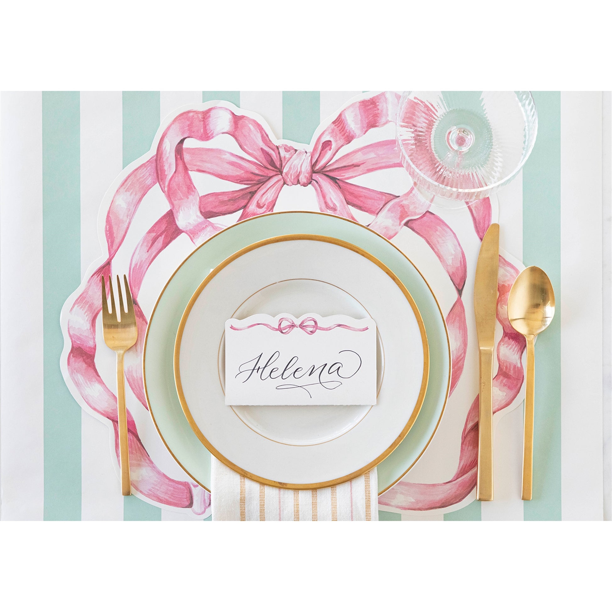 The Die-cut Pink Bow Placemat makes the sweetest frame for your plate, bringing a touch of whimsy to any gathering. This delicate pink piece pairs beautifully with many of our stories if you’d like a bolder statement (hello, peonies!), or is perfectly suited to star on its own.