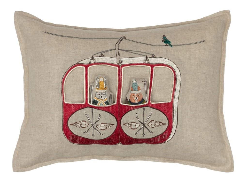 Fox and bunny are hitting the slopes! The two pals hitch a ride on their ski lodge gondola. Take fox and bunny out of their pockets to see their colorful winter parkas and all of their ski gear!