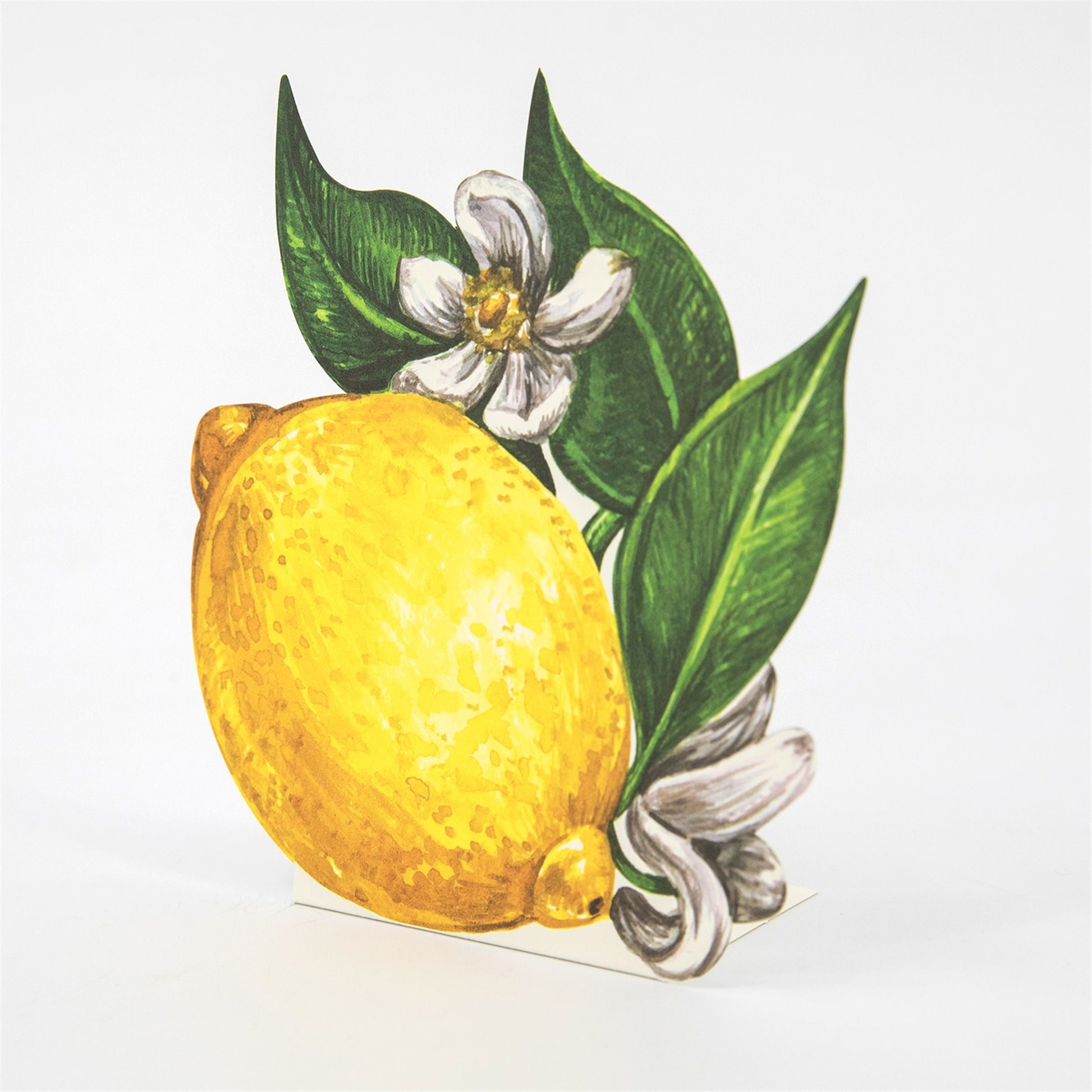 The oversized Lemon Place Card is a cheerful addition to spring and summer tables, buffets, and more. With plenty of writing space, these can be used to mark seating, label dishes, or offer a welcoming message to guests.