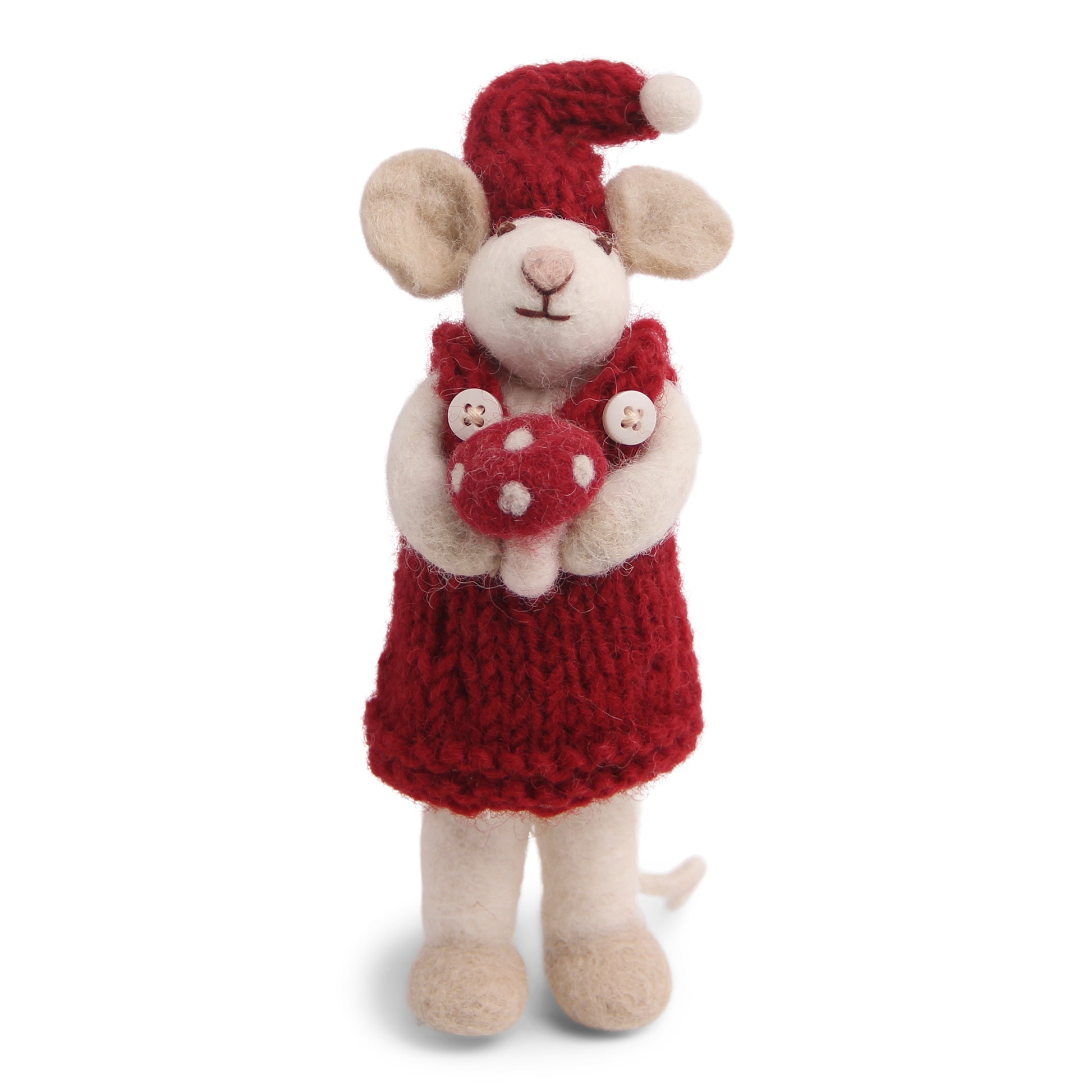 Felt White Mouse - with Mushroom in Dress