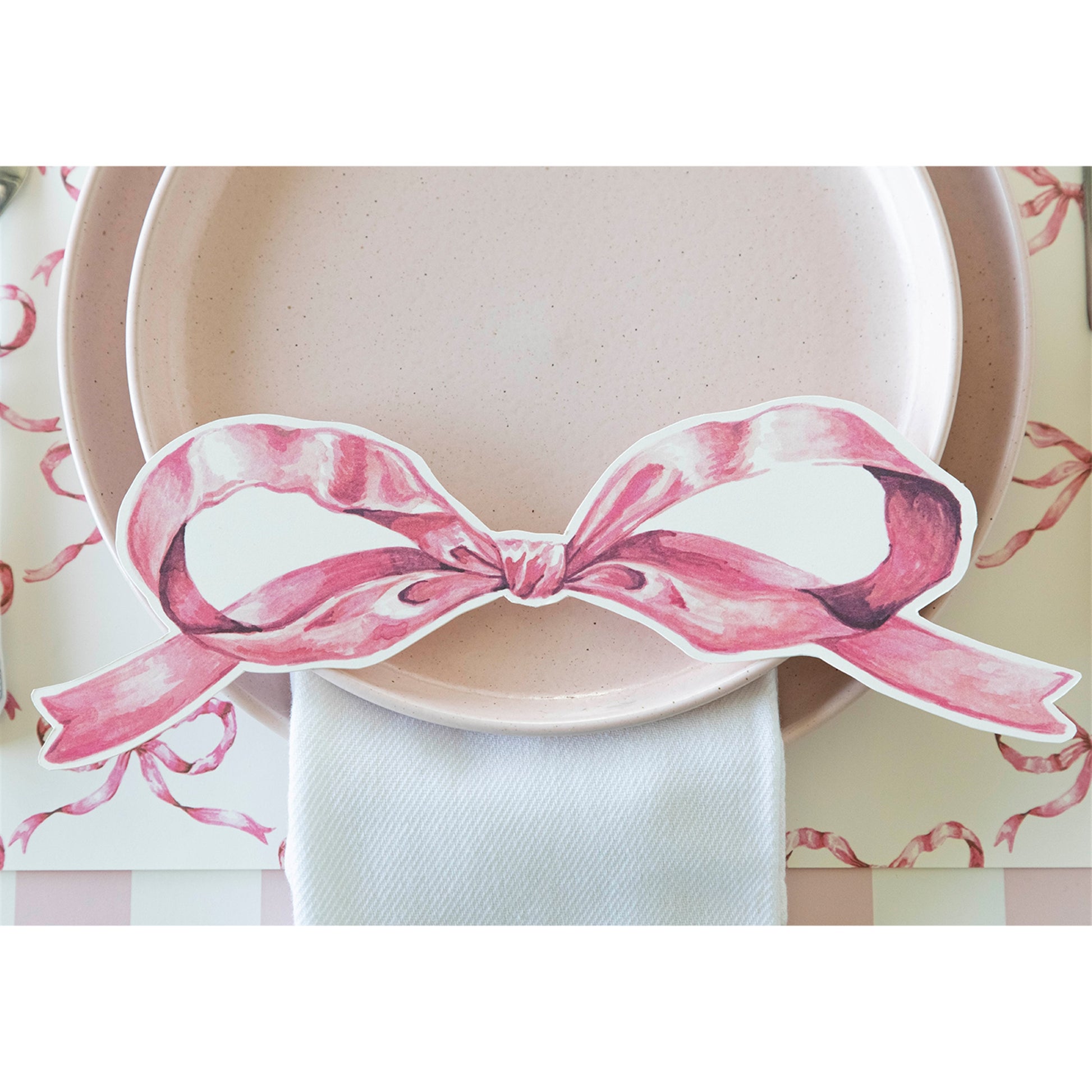 The Pink Bow Table Accent is a sweet and versatile piece that looks great both on and off the plate! Whether serving as an oversized place card across your plate, or a delicate topper above or below, this fun accent offers endless styling possibilities.