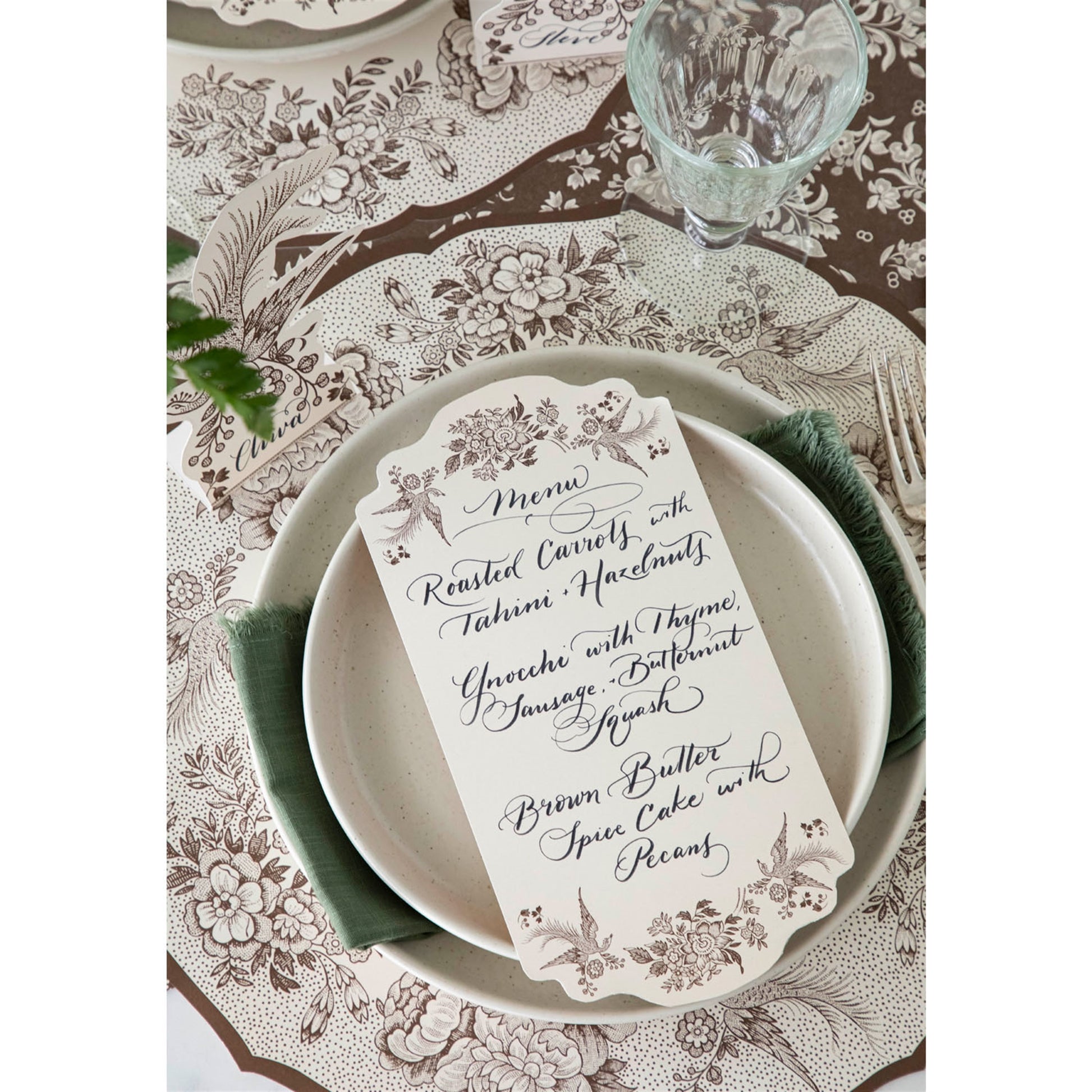 Add a delicate touch to your table. In collaboration with Burleigh, this table card highlights one of their most cherished designs.