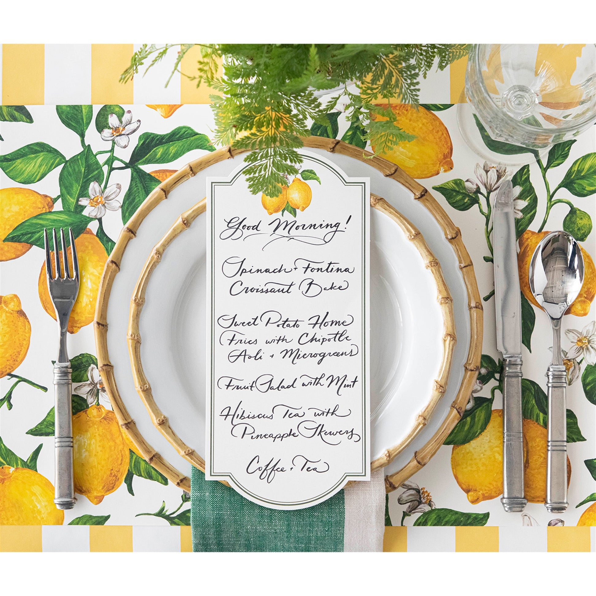 Table cards are the “write” addition to your next setting! Companions to our Table Accents, this item features a larger writing area, perfect for menus, lists, itineraries, sweet sentiments and more.