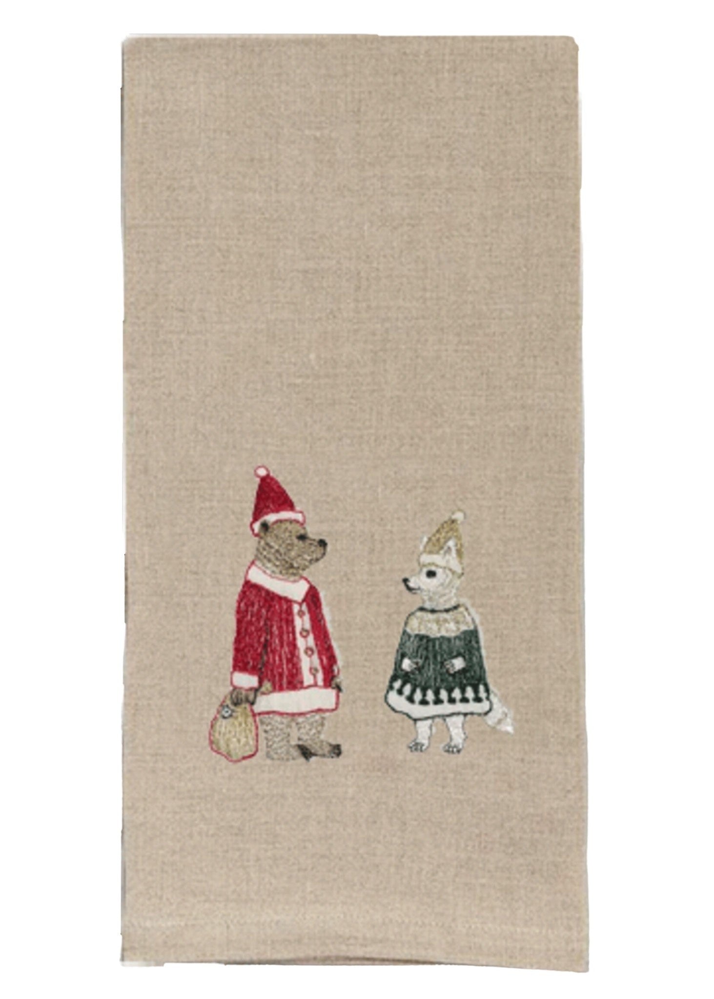 Do you hear what I hear? The jingle of Santa's sleigh and reindeer hooves clattering on the roof! Santa Bear and Ms. Claus are here, dressed in corresponding Christmas suits of red and green.